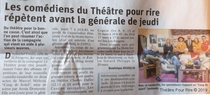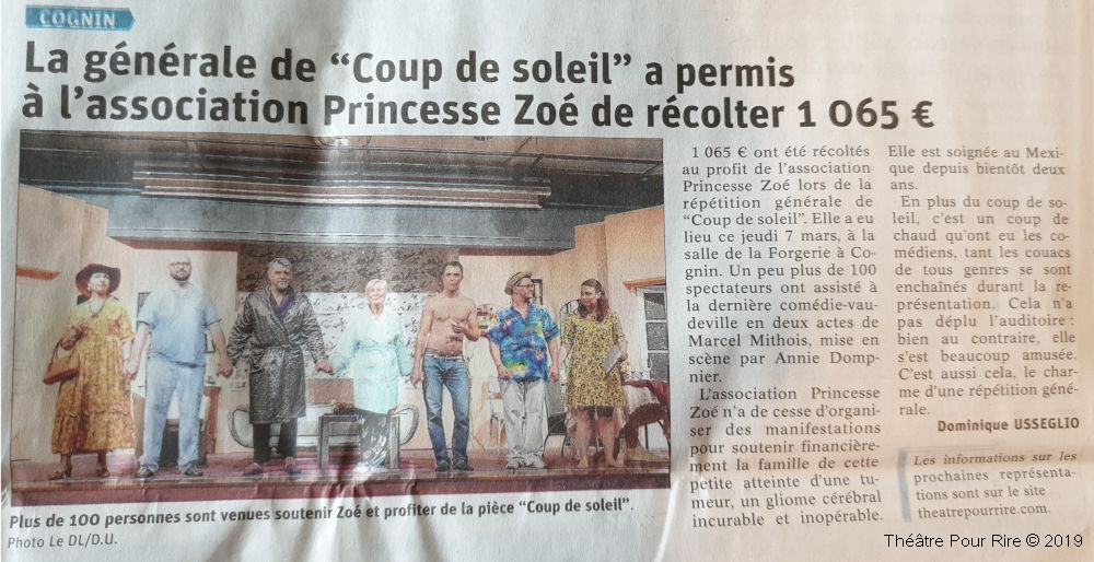La Générale à COGNIN, Salle de la Forgerie, a été jouée entièrement au profit de l’Association Princesse Zoé ♥.