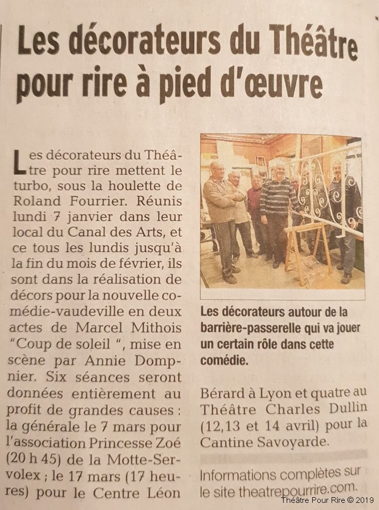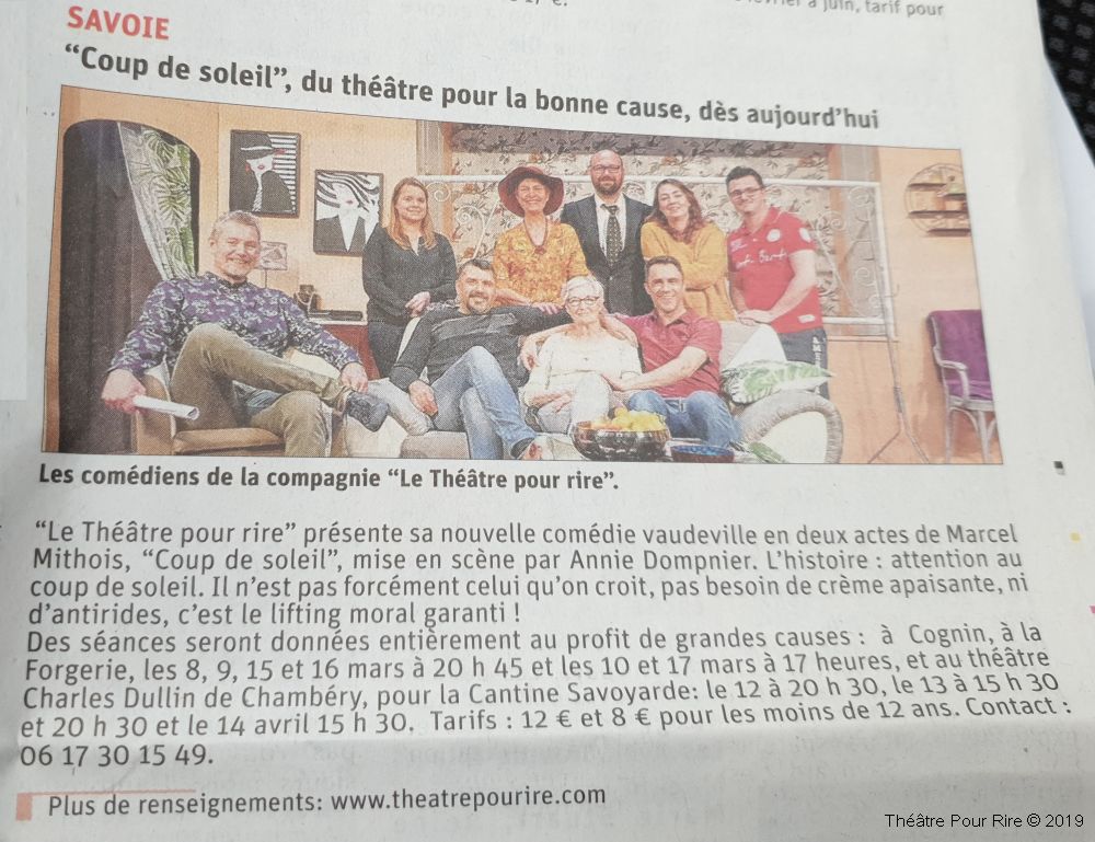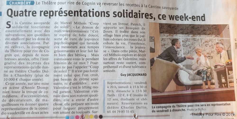 Toutes les représentations au Théâtre Charles DULLIN de Chambéry l’ont été au profit de La Cantine Savoyarde, Service de repas aux personnes démunies. ♥ CS ♥.