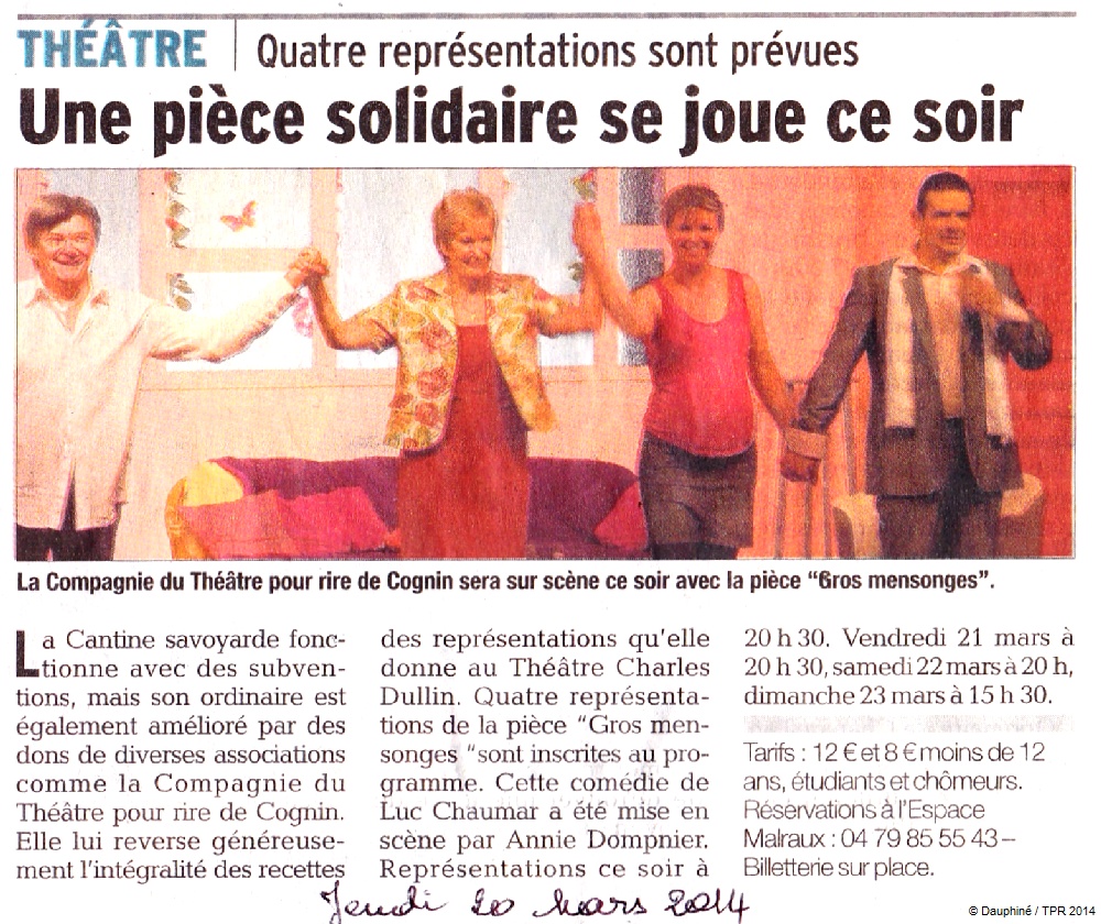 Les représentations au Théâtre Charles DULLIN de Chambéry l’ont été au profit de « La Cantine Savoyarde ».