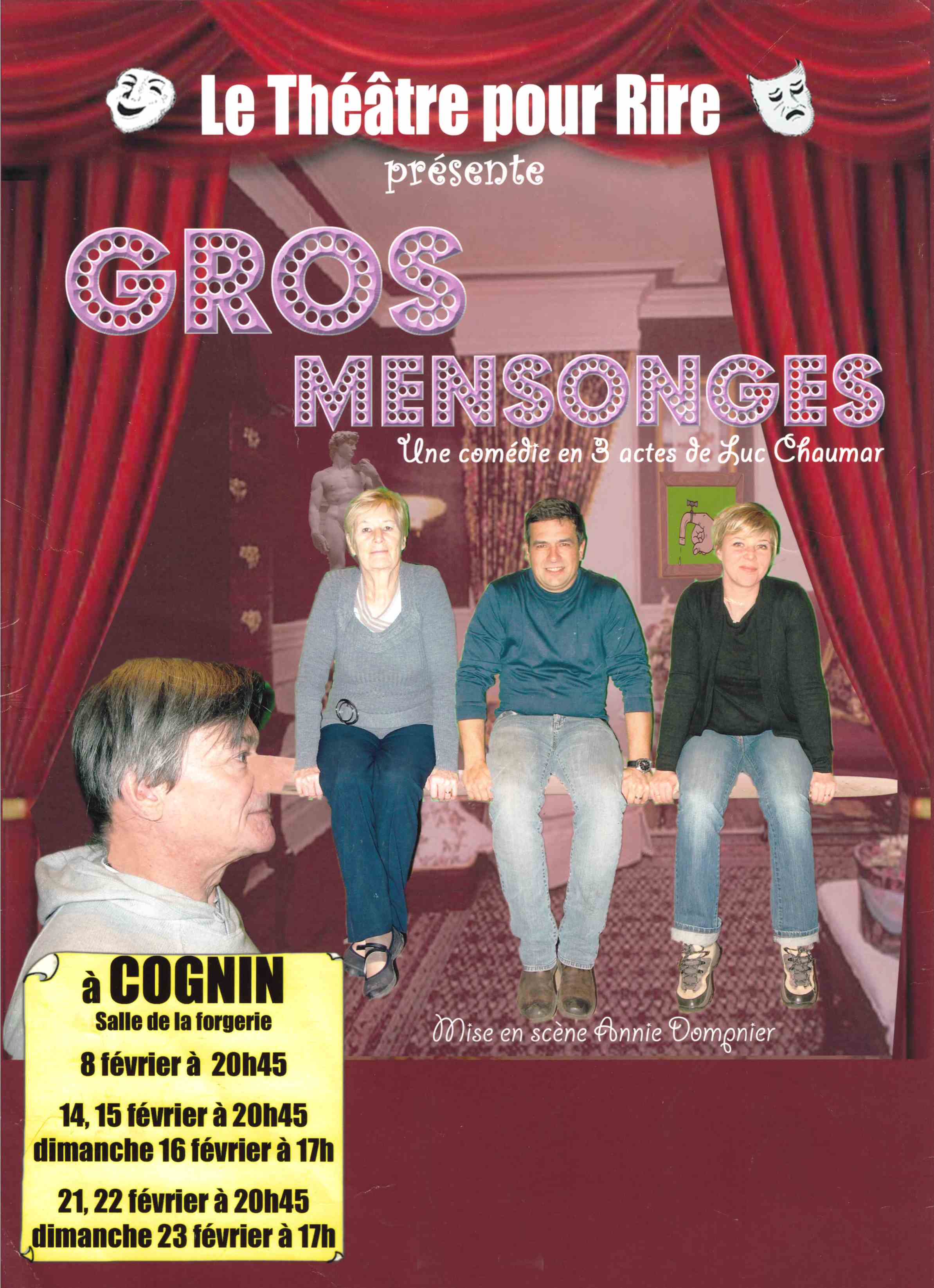Comme prévu la répétition générale de « Gros mensonges » de Luc Chaumar a eut lieu Jeudi 6 février à 20 H 45 salle de la Forgerie au profit des « Enfants de Jehangirabad » (Inde Centrale).