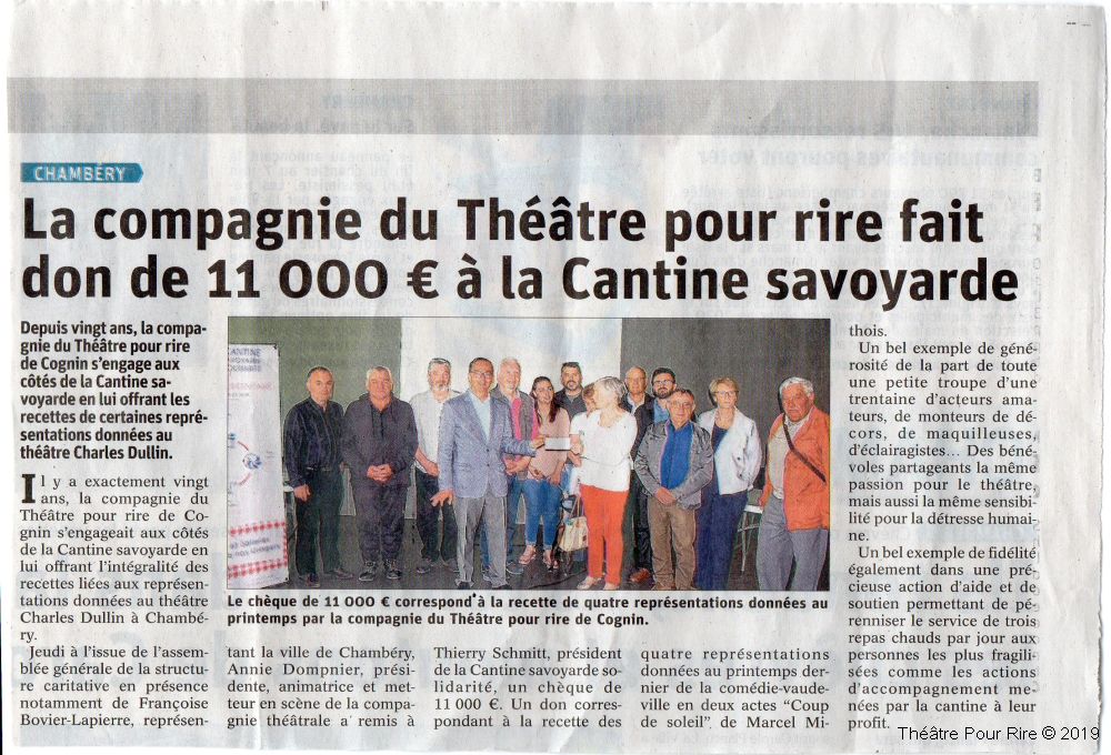 Grâce à tous nos spectateurs nous sommes fiers d’avoir pu faire don de 11.000 Euros à La Cantine Savoyarde !
