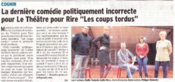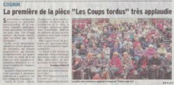 Voici quelques photos de la Première, jouée ce samedi 07 février 2015 salle de la Forgerie à Cognin. Retrouvez toutes nos représentations et photos de l’année ICI . Et rendez-vous le WE du 27-28 février 20h45 , toujours à Cognin, ainsi que le dimanche 1er mars 17h au profit de la Fondation… Continuer à lire