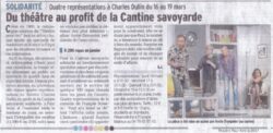 Plus de 1400 personnes à Dullin, plus de 3000 spectateurs en tout pour cette saison : quel soutien ! Quel plaisir ! Cette année, tous ensemble, nous avons pu aider: – l’APAJH comité 73 (Association Pour Adultes et Jeunes Handicapés) – le Centre de recherche contre le Cancer Léon Bérard – La… Continuer à lire